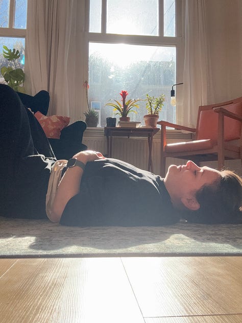 Sunbathing in my living room, which doesn’t happen often in Amsterdam, making it even more amazing.