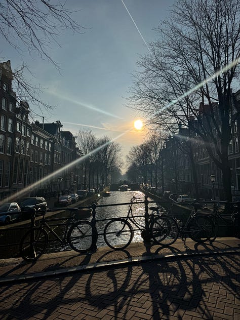 Walking along the canals in Amsterdam each morning to my coworking office, and then doing it again on my way home.