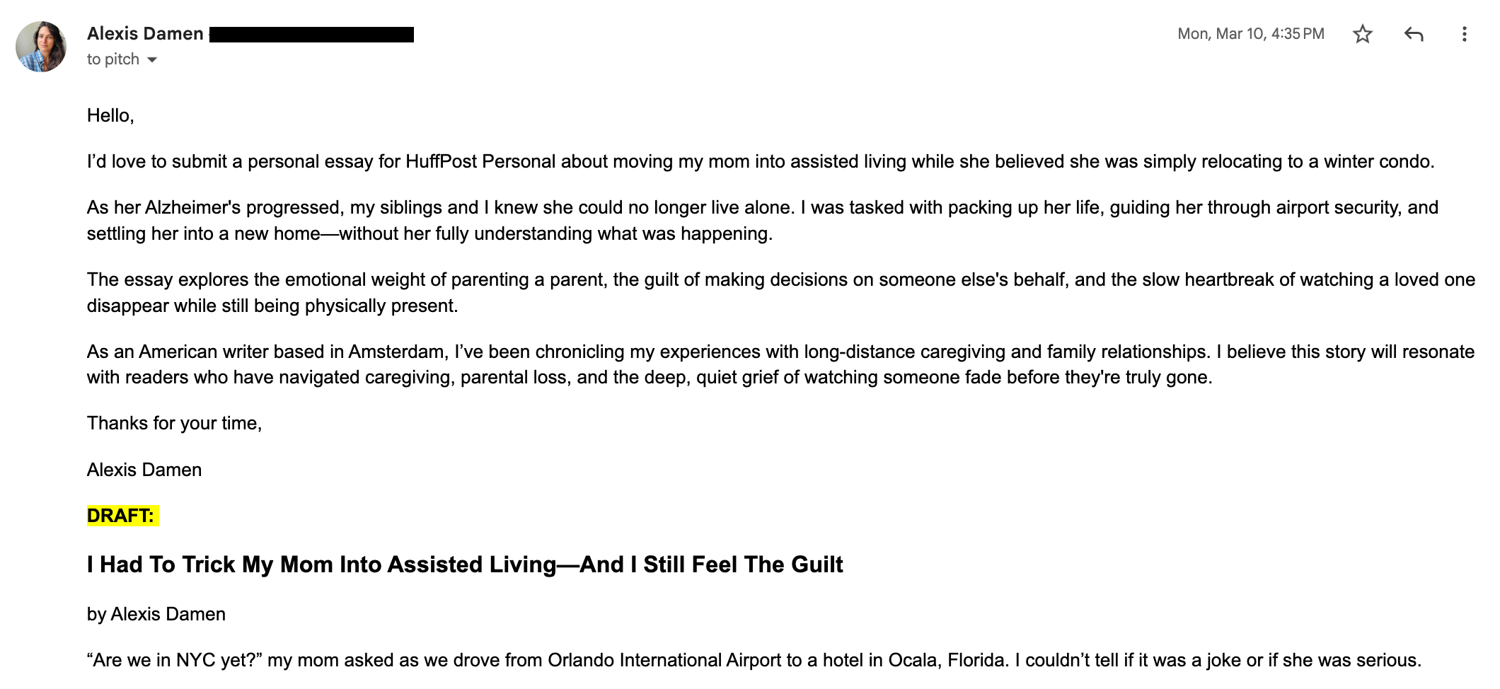 SUBJECT: Submission: I Had To Trick My Mom Into Assisted Living—And I Still Feel The Guilt